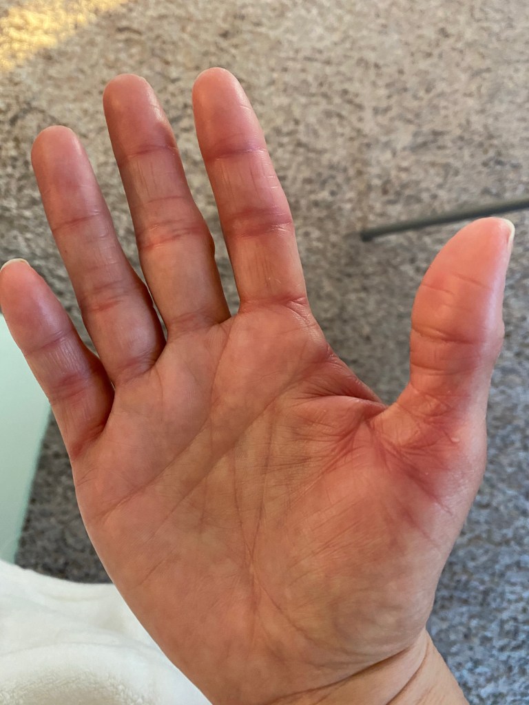 I’ve had some weird skin things going on. This started last night and only on my right hand. It burns a bit.