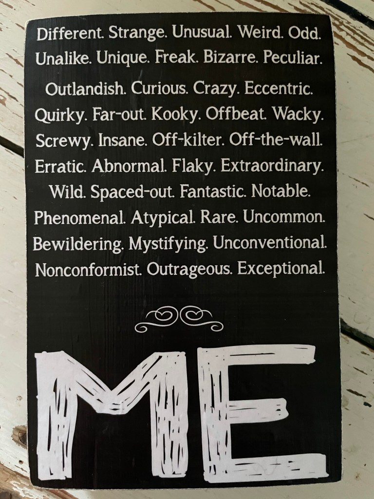 It was such a nice day out today—just warm enough and sunny. And it got even better when a friend stopped by and hung out on the deck with me for a while after work. We haven’t been able to chat for more than a few minutes at a time in months, so it was great to spend some extended time together. She also brought a gift which was super sweet on its own, but it also included this plaque. I’m thankful for a friend who gets me!