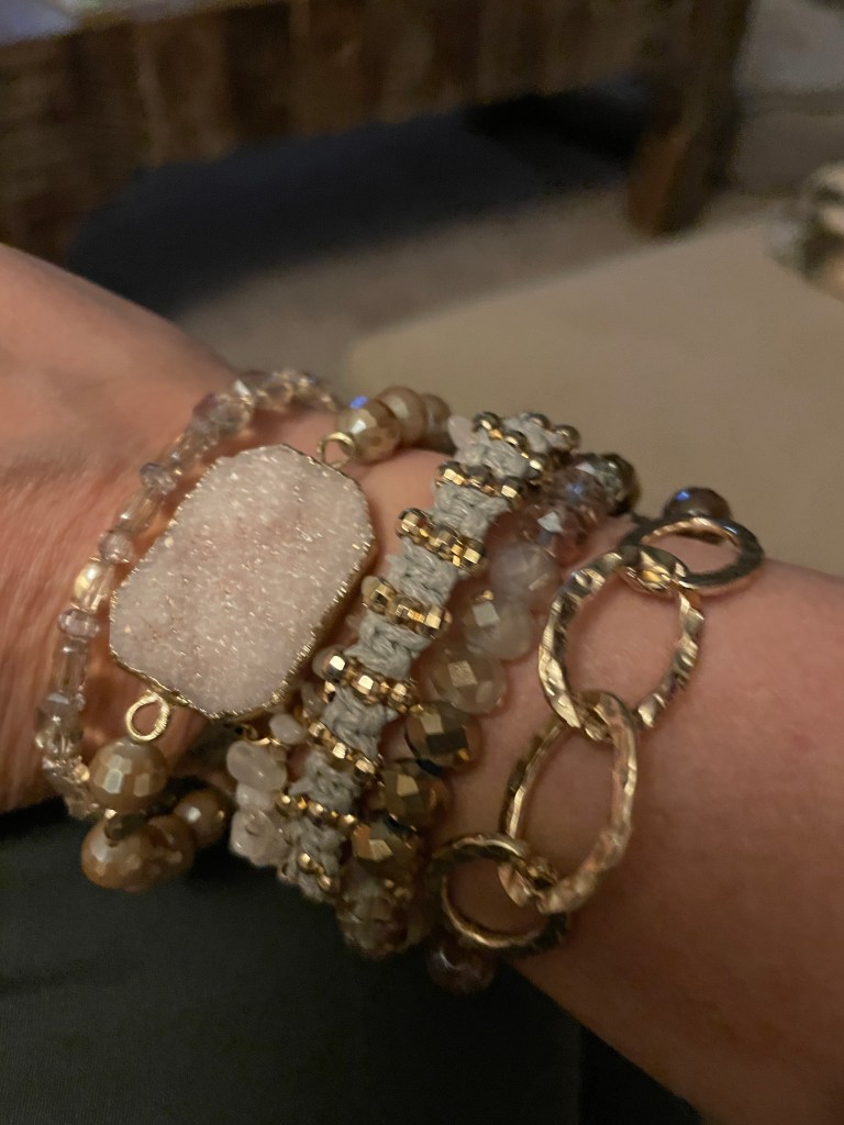 I’m so thankful for this surprise today but mostly for their friendship. It was good to laugh together again while sharing fresh strawberry-peach margaritas and a lovely charcuterie board. They even gave me this bracelet grouping which will go with so much. I hope we are able to start seeing each other regularly again!