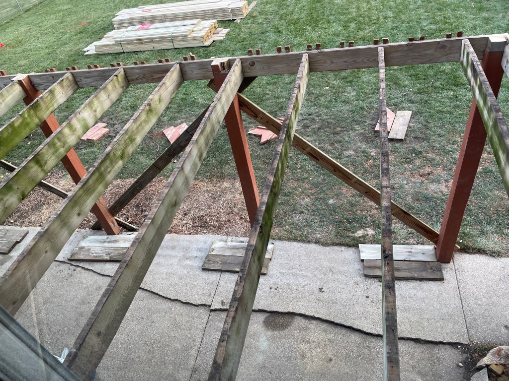 Rebuilding a deck because you HAVE to is like replacing a roof or windows that have gone bad. It’s the home equivalent of buying underwear. Necessary but not especially exciting. So we decided if we’re gonna spend a bunch a money, we might as well get something out of it. Therefore we are making the deck a tad bigger. Ok, we are doubling the size of it. It’s slightly nuts since we never entertain, so needing a lot more space isn’t really essential, but at the same time, we also don’t go anywhere. Spending time in our backyard has been our primary source of vacation time for the last few years. Plus our backyard is big enough that it won’t be weird.