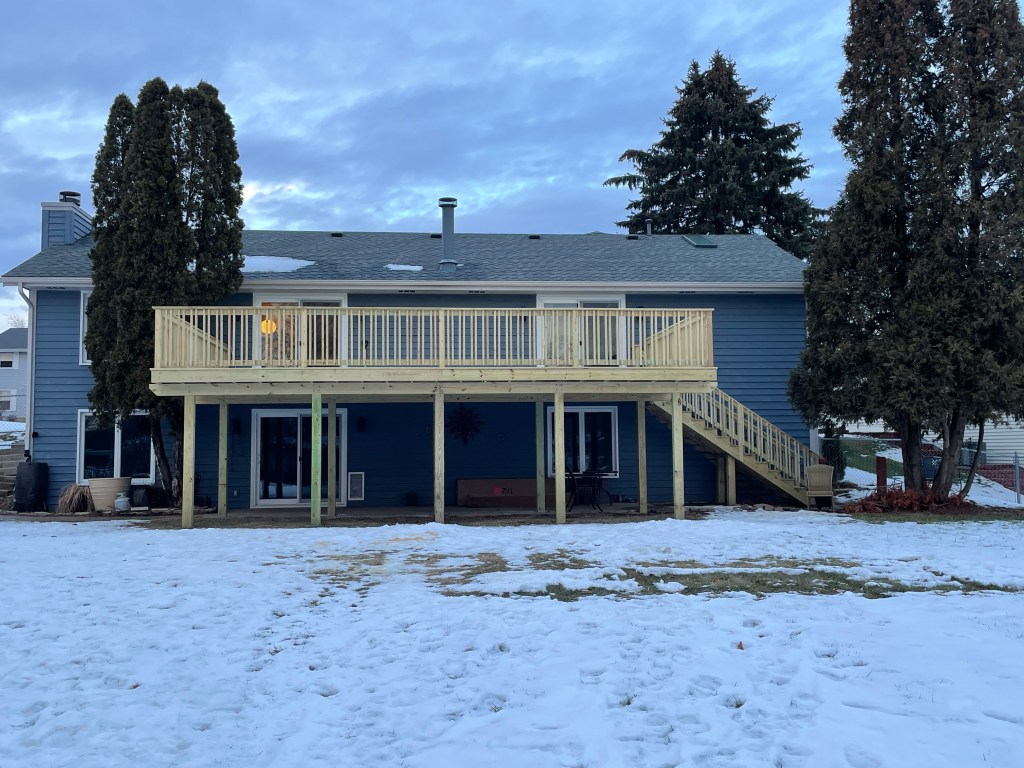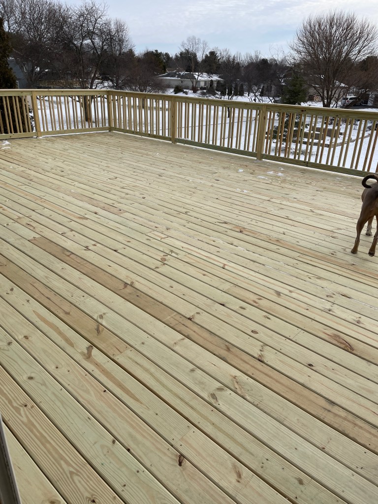 Our deck is finished! The guys actually finished yesterday but I didn’t get a picture. And the high temperature yesterday was not that high. Something like 28F. I felt bad for them, but they wrapped things up in half a day and never complained.