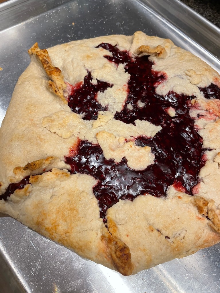 But at least I got some things done today—cleaning, of course, but also I sewed a bit. We have towels that were coming unraveled, and I finally got them fixed. I also worked on the furniture I’m redoing for my sister. My hands hurt from pulling out staples. My back hurts from hunching over and sitting on the floor. My chest is aching again. I’m not used to this physical labor! But it feels good in a weird way. I celebrated by making a raspberry galette. Mmmm.