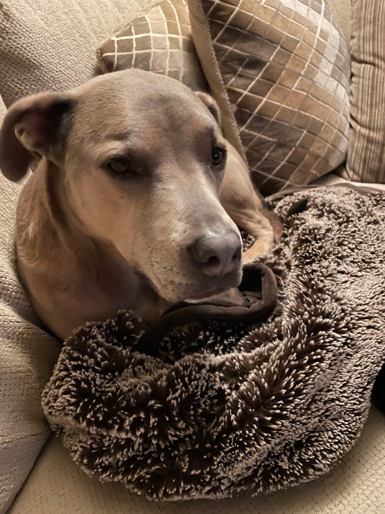 Then tonight I had a few potato chips. Just a few because of the stupid losing weight thing. And I dropped one and almost caught it but Chance swooped in and fought me for it. Practically swallowed it whole in his excitement. (Ahem. Don’t ask me how he knows they’re yummy.) Double Grrr.