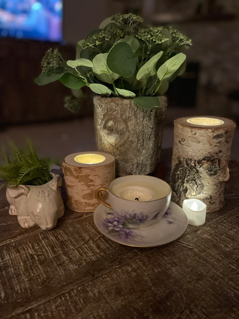 As usual, another long day at work, but I stopped and had a glass of wine with a friend afterwards. And then took a walk around the block with Patrick before collapsing on the sofa. Chance was really snuggly, too. Even though I should have been doing some errands, I’m thankful for just relaxing. I’m also thankful I got Spring decor out last week because the grouping on our coffee table adds to the calm atmosphere.
