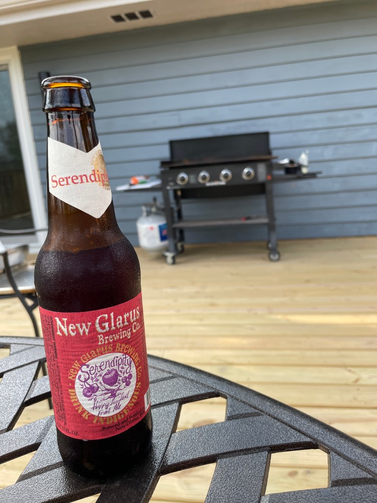 This was the start of a yummy dinner to end the day. We are unseasonably warm this week—today it was 91 degrees on my way home from work! Still, Patrick fired up the flat-top grill and made smashed turkey burgers while I enjoyed my fruit beer. I’m thankful for his good cooking skills, the bit of early summer, and time out on the deck.