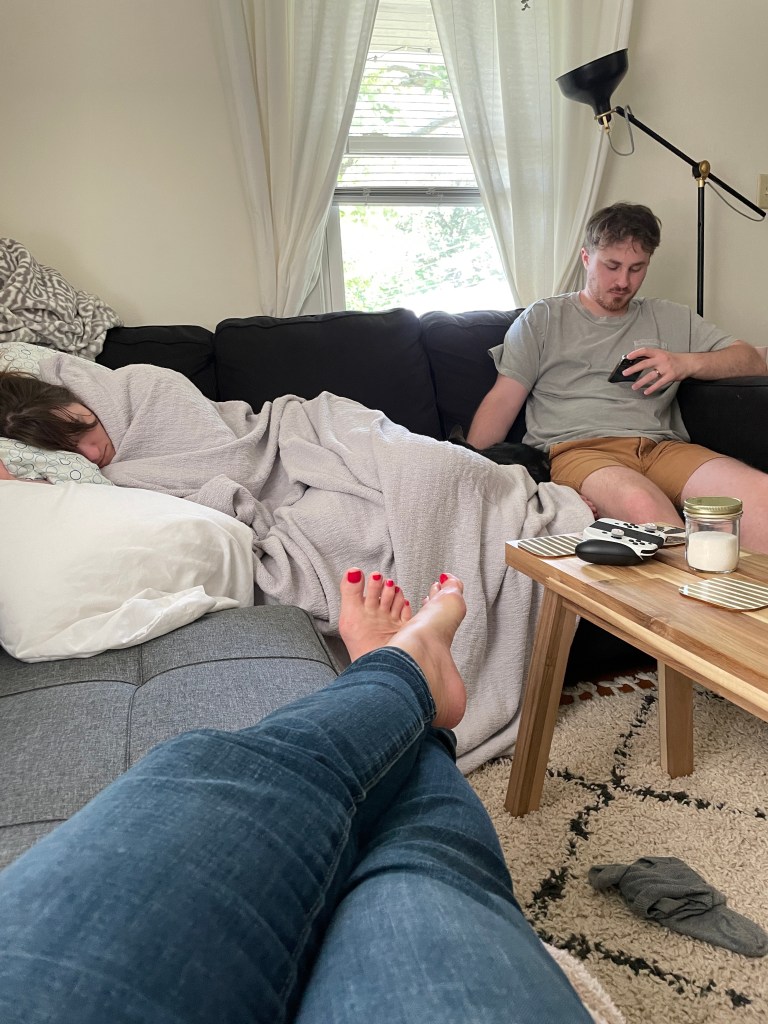 This is what happens after hanging out and staying up late for a few days. Exhaustion. On our final day together, we walked to a Thai restaurant for lunch (in the 90 degrees) and played games. Emma left early to drive back home, and Brianna took a quick nap before they dropped me off at the airport. Thankfully, my flight was uneventful as was Emma’s ride home. Once again, I’m grateful for my fun weekend. I miss my kids already.