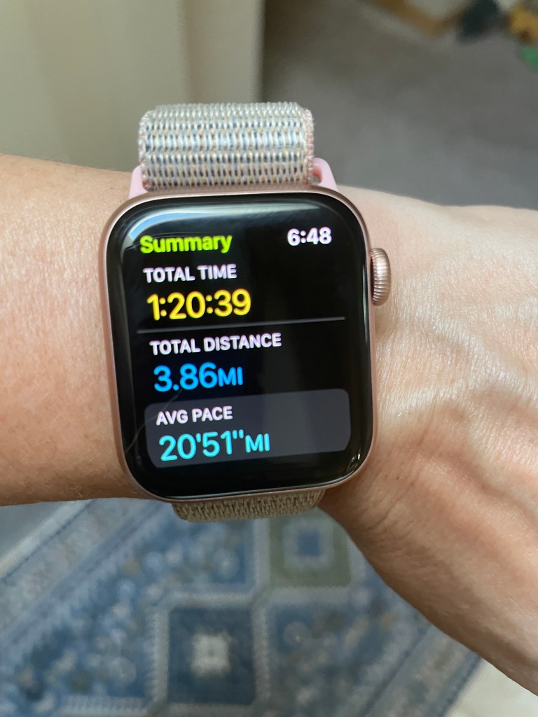 Ok, ignore the pace section on my watch. I was walking. I’m so thankful today that I walked almost 4 miles and did not feel like I was overworked. I’m finally gaining some stamina which is a good thing. Now on to losing some weight.