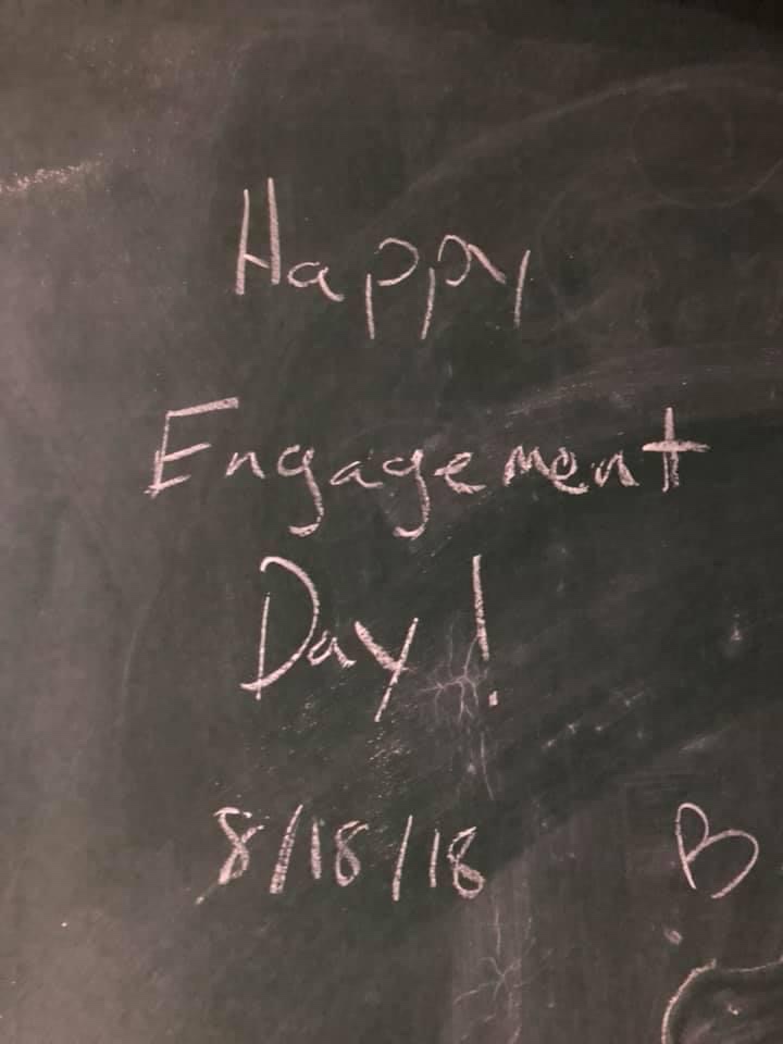 A year after we were engaged, Patrick wrote this on the chalkboard before he left the house. We were married by then, so it was sweet that he remembered. I’m thankful for these memories pop up on Facebook.