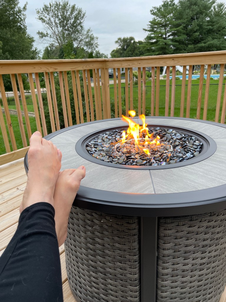 I’ve had moments where my wracking cough subsided and my sinuses cleared today, so I’m hoping tomorrow is better. I took one of those moments as an opportunity to relax briefly next to our fire table. Finally, a little holiday weekend vibe. I’m thankful for that.