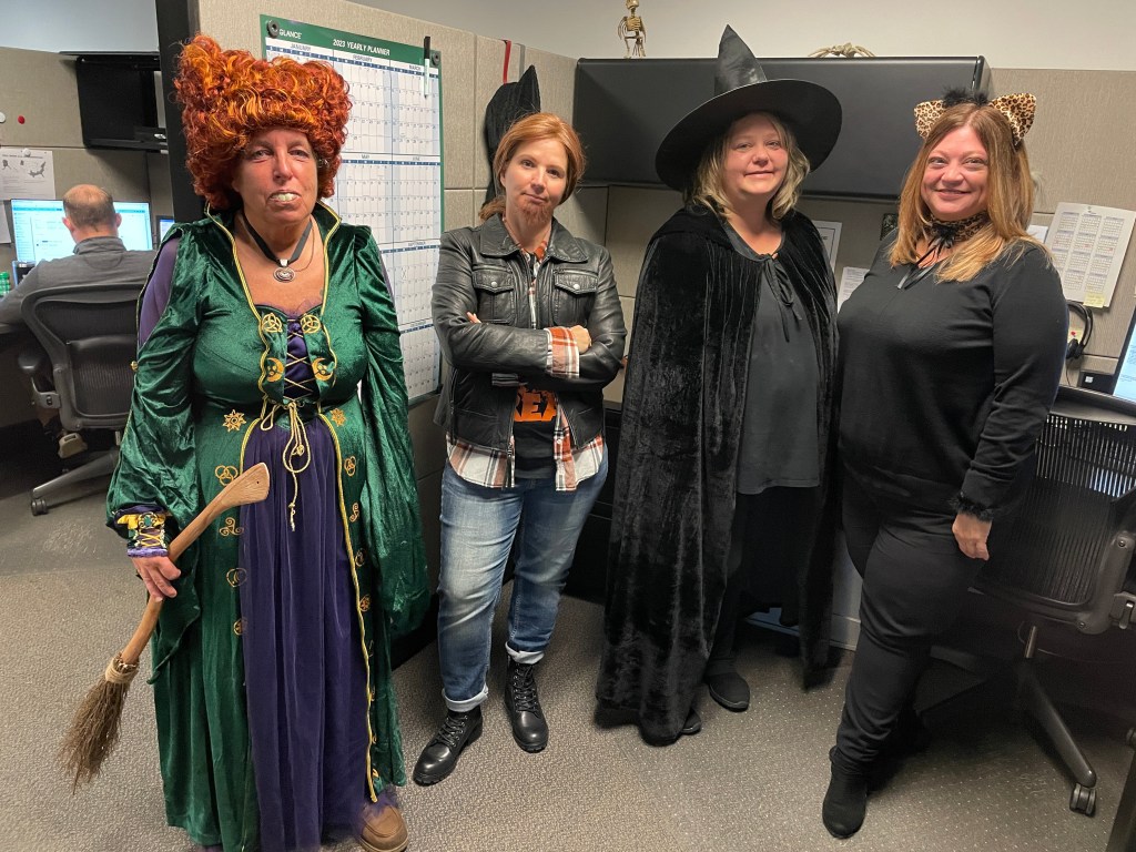 Facial hair is itchy. Just saying. That explains my disgusted look. Well, that and Monday. Just kidding. It was a busy day, but half a dozen folks dressed up at work, so that was fun! I only got a picture of my group.