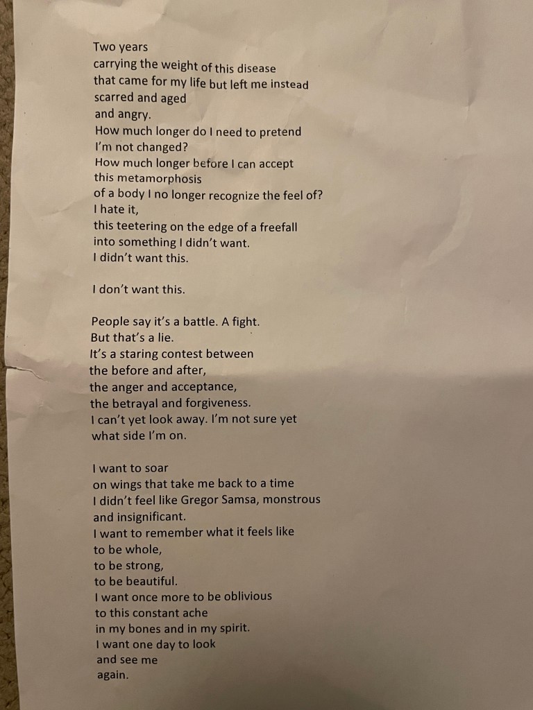 I recently wrote this poem, and it sums up my feelings today. I’m going to leave this here, and then I’m going to focus on the positives.