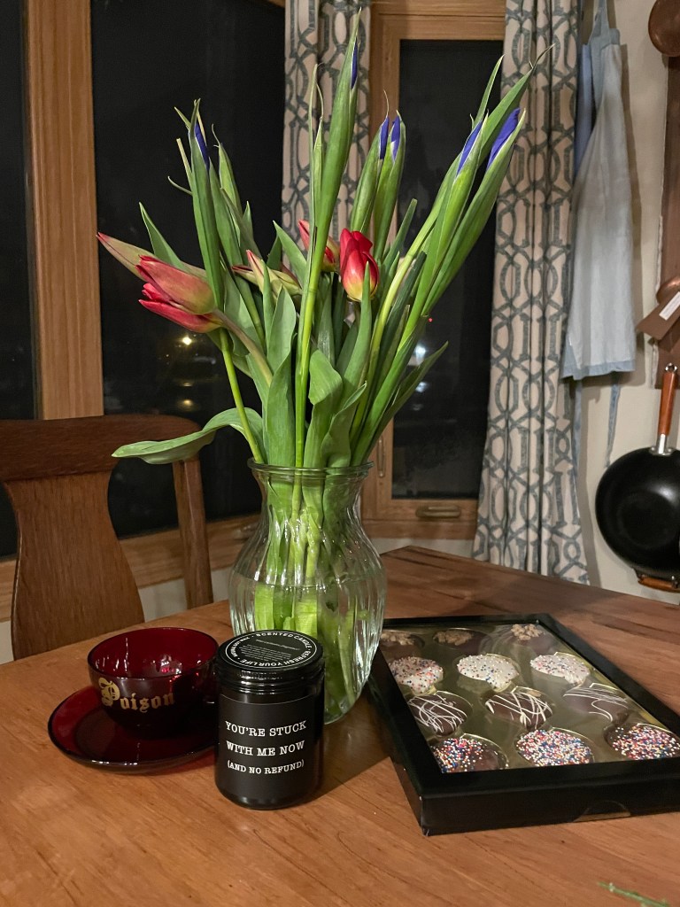 Happy Valentine’s Day! I know it’s not a holiday everyone celebrates, but I enjoy having a day reserved for love—and not just romantic love, but friendship as well. And I felt the love today. I’m thankful for my friends and family. And for dinner out with Patrick and Emma.