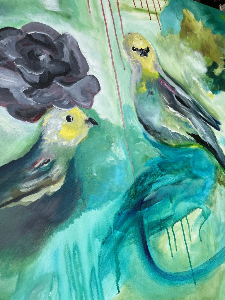 Instead I started a painting for our bedroom. I’ve been wanting to do one inspired by poems written by a friend of mine. Now that I got our bedroom painted, I figured it was time to start the fun painting. I’m not done, but I’m thankful to get started.