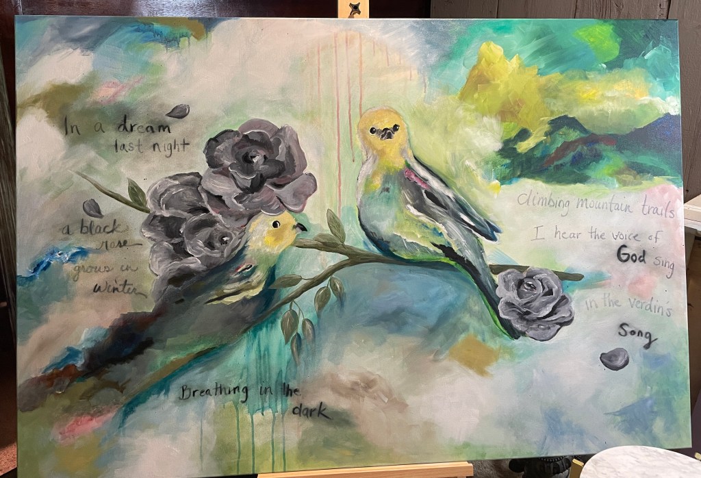 We spent a lot of the day distracting ourselves. Patrick scraped and power washed the house in preparation for finishing the painting. I worked on my painting and another junk book, and cleaned an old wooden trunk I bought a while ago. I’m grateful for having things to do.