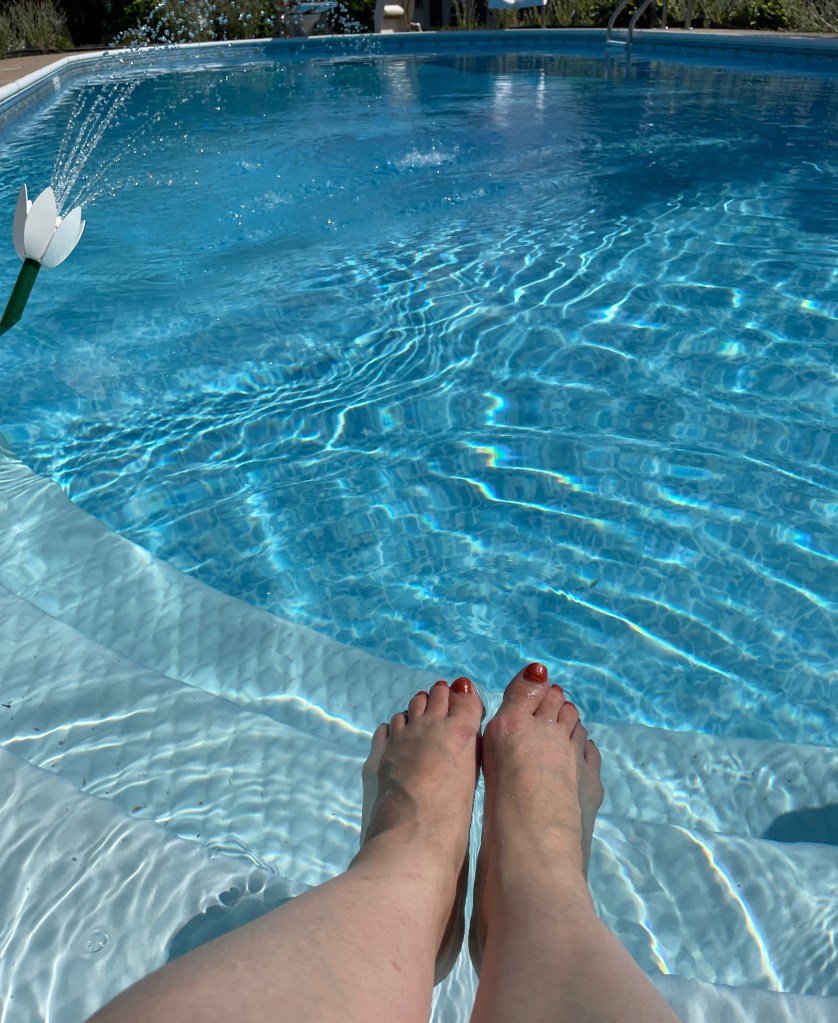 Thankfully, our next-door neighbor is out of town and told us before she left that we were welcome to use her pool while she was gone. Actually, she said we could use it anytime, but no way I’m walking into her backyard while she’s home and hopping into her pool. But we took a quick dip to cool off this afternoon. It was refreshing, and I’m grateful for her generosity.