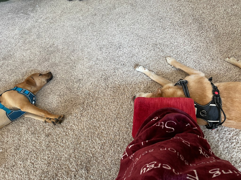 August 28, 2023 Posted on August 28, 2023 by mclements43 under Uncategorized I’m grateful today, on my first day alone at home post surgery, that these guys were good. We did a lot of relaxing. Share this: Click to share on X (Opens in new window) X Click to share on Facebook (Opens in new window) Facebook Like Loading... Related