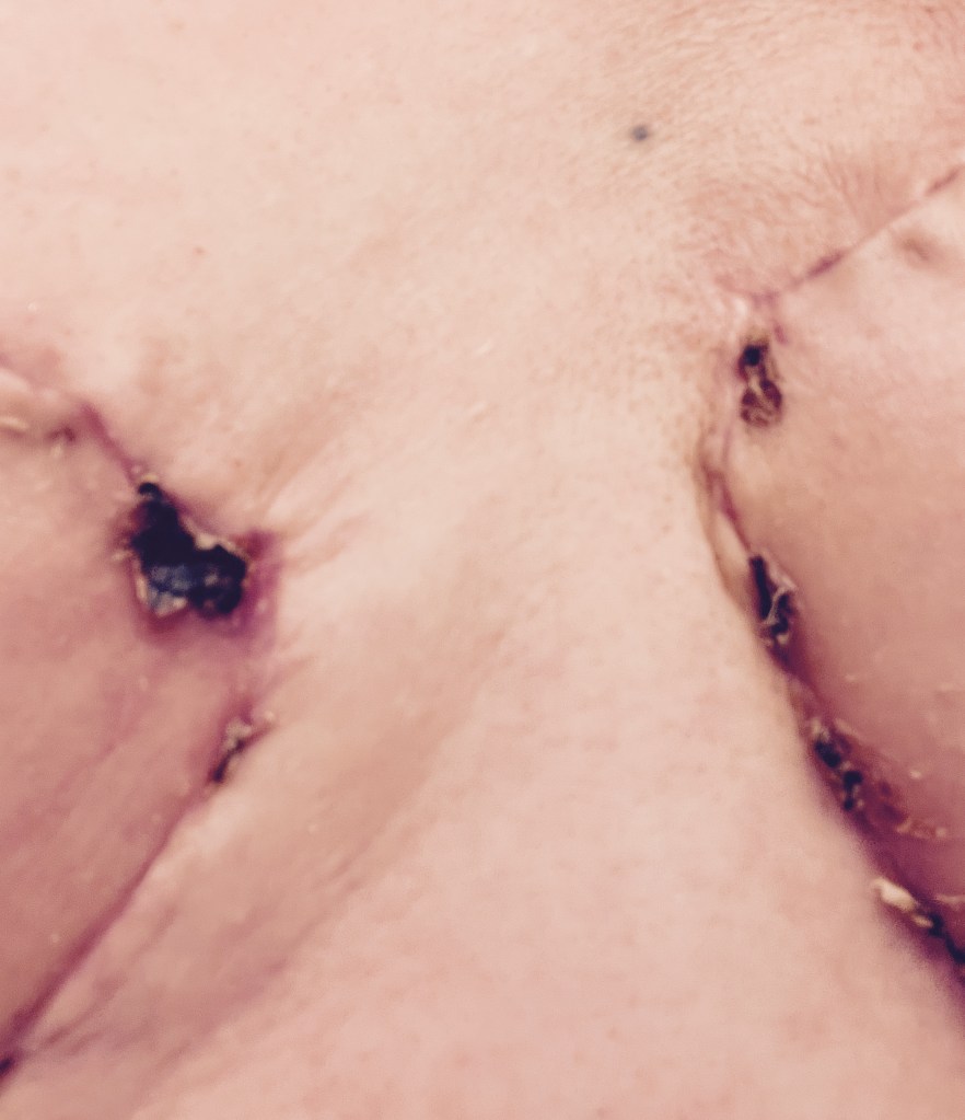 I have a spot on my tummy incision that my doctor’s office thinks could be a spitting suture. I thought the nurse misspelled “splitting” but after a google search, I discovered it means a stitch coming to the surface. I’ve been instructed to use warm compresses and antibiotic ointment on it. I’m thankful it’s not actually splitting. I got real nervous for a second visualizing a gaping wound. In fact, most of my incisions are mostly healed. There are some big scabs on my breasts that are still hanging on, but I’ve done really well not picking at anything. And since I’m forbidden from using lotion or anything, I’m really hoping the scars left behind aren’t too bad. I’m glad that every day is a little better, and my physical therapy is helping the tightness and scar tissue.