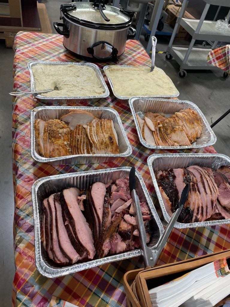 Patrick cooked for my company Thanksgiving and retirement luncheon today. He was up super early to get ham smoked and everything ready and I’m so grateful for his hard work. And so was everyone else. His food was a hit, of course.