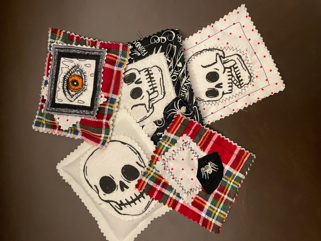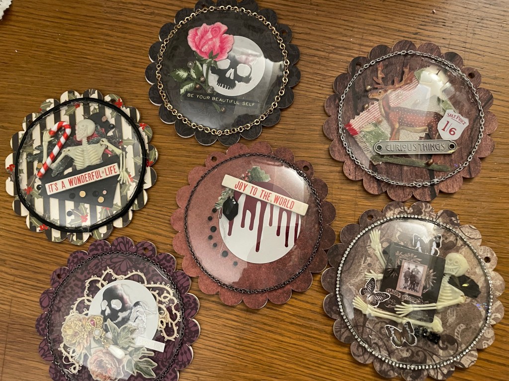 I think I got a good start on some small items that might be an easy sell. Who knows. I really have no idea what will go at a market where the theme is Holiday Shopping with Serial Killers. Ghost Face and Freddy will be there. I’ll be spending all day tomorrow making skull wreaths and more odd stuff.