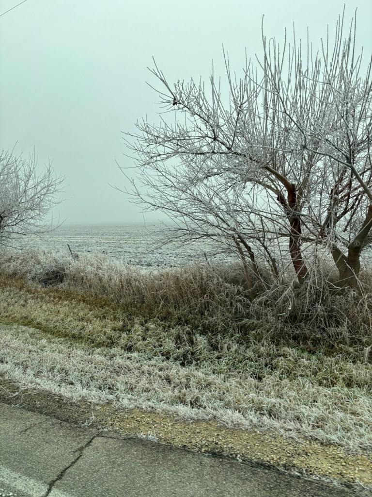 We woke to the most beautiful frost this morning that lasted a good portion of the day. I wish I had gotten better pictures, but I didn’t think about it until Patrick and I were out for a drive.