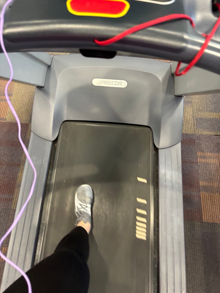 Man, these dreary January days are the worst killers of motivation. I’m glad it’s getting warmer, but the rain can now stop. Where is the sun when we need it most?! I wanted to drive straight home after work and go to bed, but I didn’t. I forced myself to go to the gym instead. I lifted weights for about 5 minutes before I was annoyed by all the women in the women’s only section who were hogging machines. I wanted to say, Please stop sitting on the equipment and playing on your phone while people are waiting. Instead, I went to a different area and did a pre-set leg sculpting workout on the treadmill. According to this photo, I sculpted myself down to one leg.