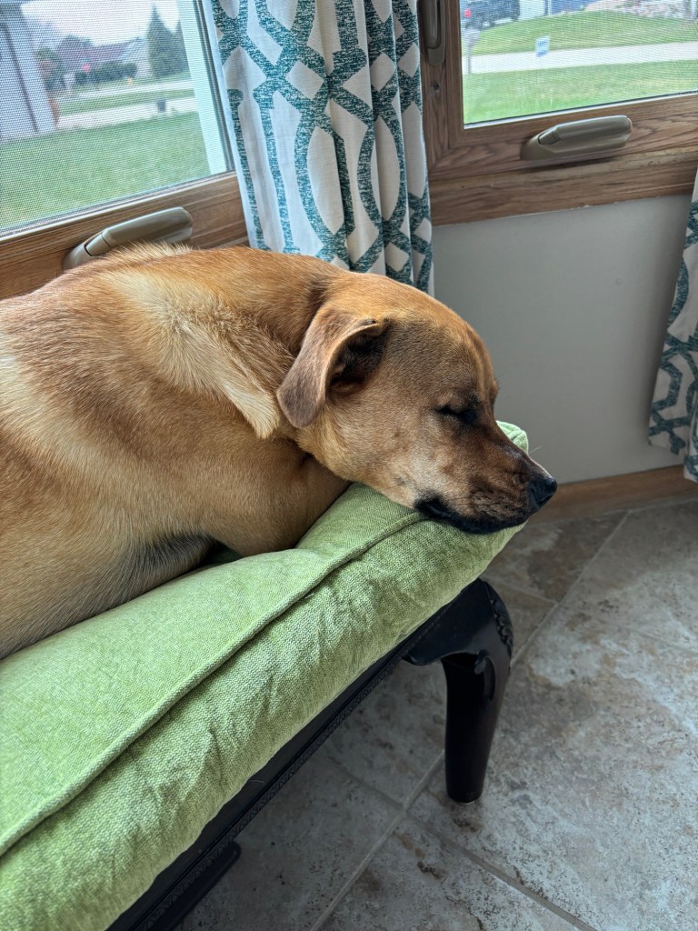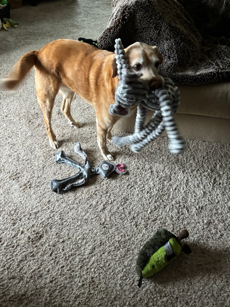 The pups also had a good day. Barley liked his new toy, and Cooper enjoyed the brief sunshine.