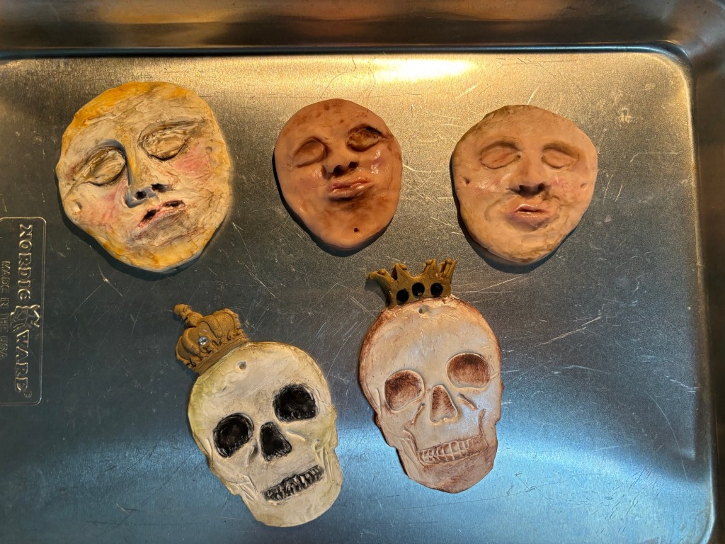 We had another rainy day (it is April) so it was a good day to hang out at home and play with clay. I got some faces baked and watched a series of videos for using plaster fabric that I’ll use for bodies.
