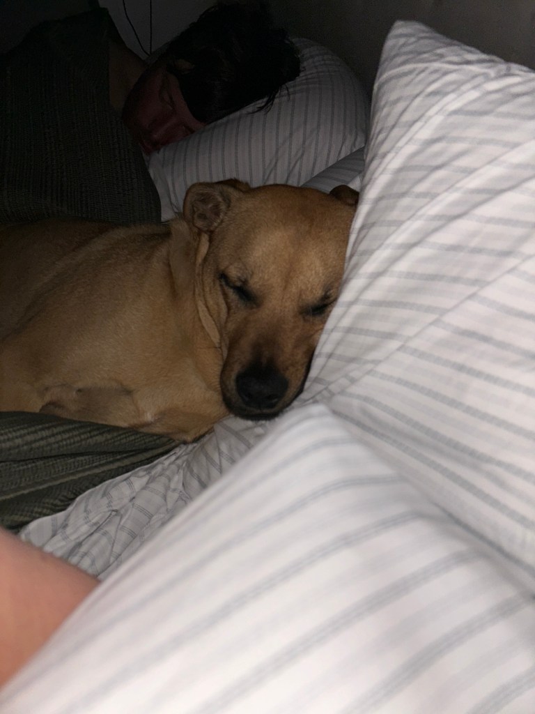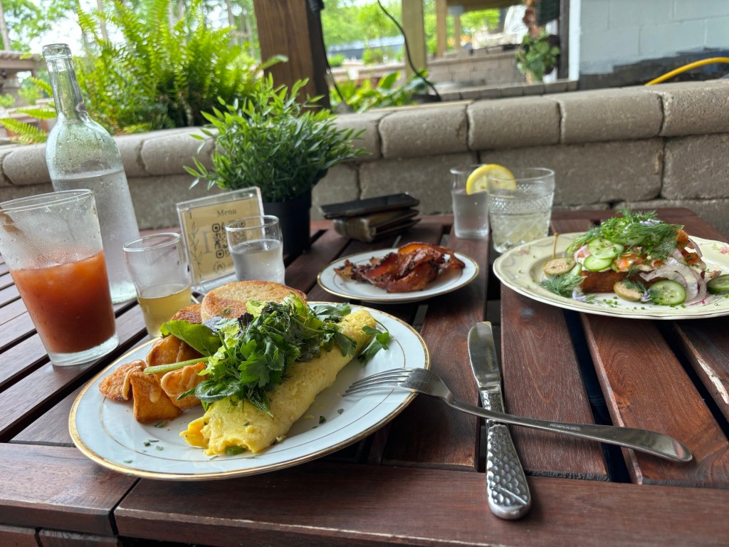 I was having trouble sleeping last night because I was getting pushed out of bed. Good thing I found the culprit, and he’s easy to move. Since I didn’t sleep well, I was hoping to sleep in, but that didn’t happen either. Since I was up early, Patrick and I got some cleaning done and then rewarded ourselves with brunch outdoors at a lovely restaurant.