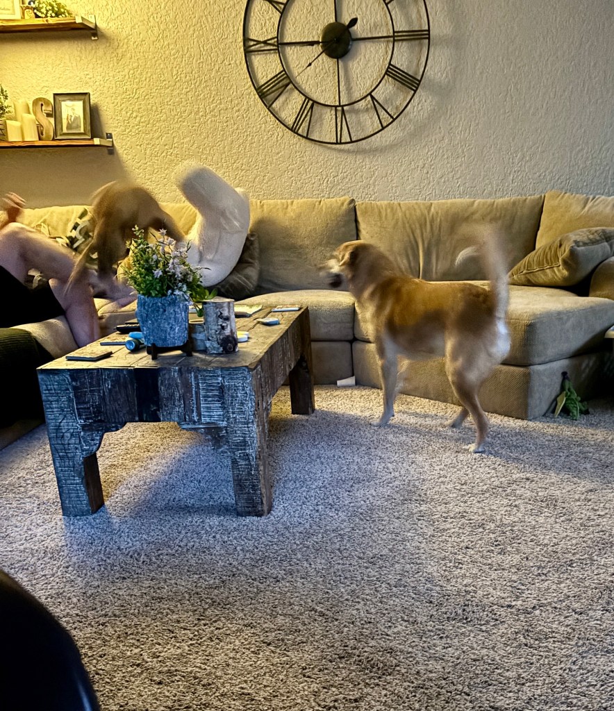 Cooper’s zoomies drive Barley crazy because he can’t catch him, but it is so funny to watch. I’m thankful for the bit of levity in our evenings even though the noise of them barking at each other interrupts our tv watching.
