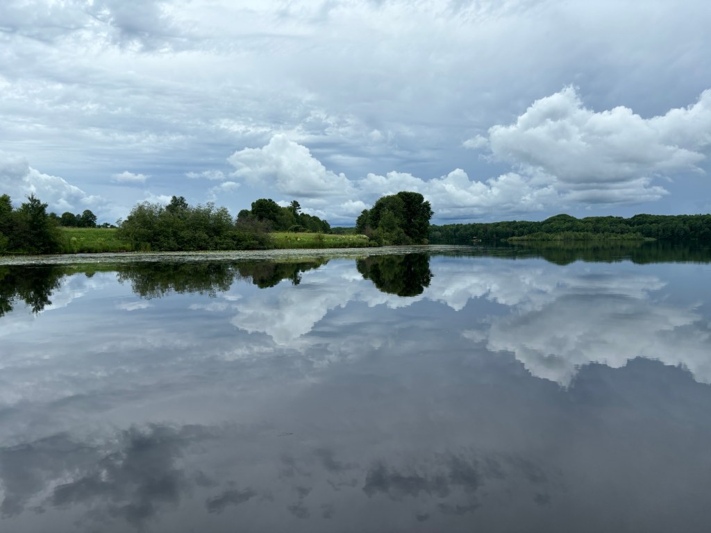 It was supposed to rain again all day, but it held off, and we were able to hang out on the lake on the pontoon. It was relaxing and fun, and the views around the lake were beautiful.