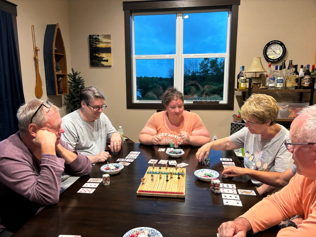 My family also likes to play games for money. Last night my aunt and uncle came over for dinner, and we played cards all night. I lost $35.00, so today I just watched.