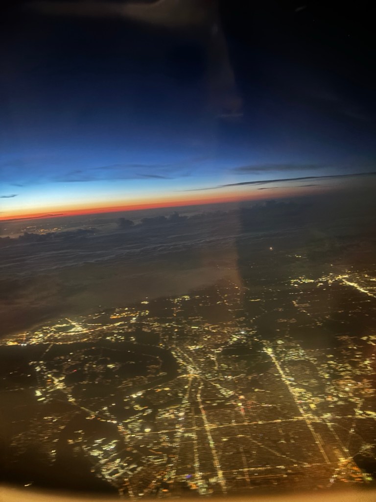 My flight was slightly delayed because one flight attendant was late to work. My guess is that she was delayed from whatever previous flight she was on, but can you imagine being the person holding up a hundred folks? Yikes. At least my work day wasn’t that bad. Plus I ended up in first class, which is not normal for me. I upgraded since the price difference was basically the cost of checking my bags, which allowed me to pack all the stuff I was planning on mailing her. Score.