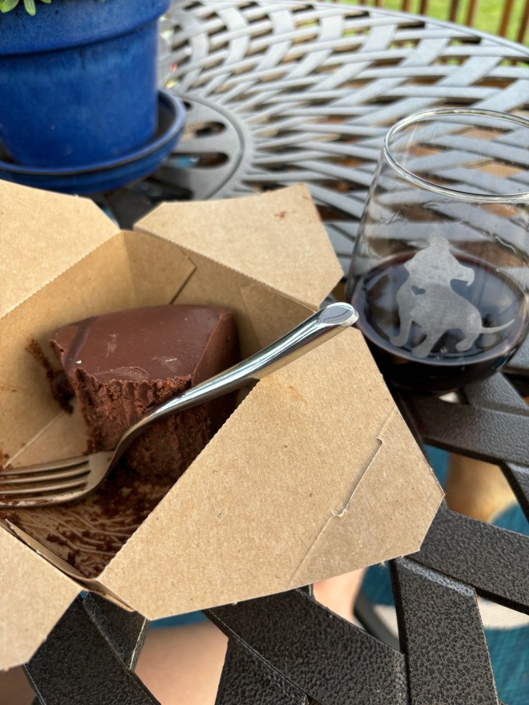 I’m also thankful she made it home safely, Patrick and I had a chance to do some shopping on the way back, and I had leftover chocolate cake for dinner.