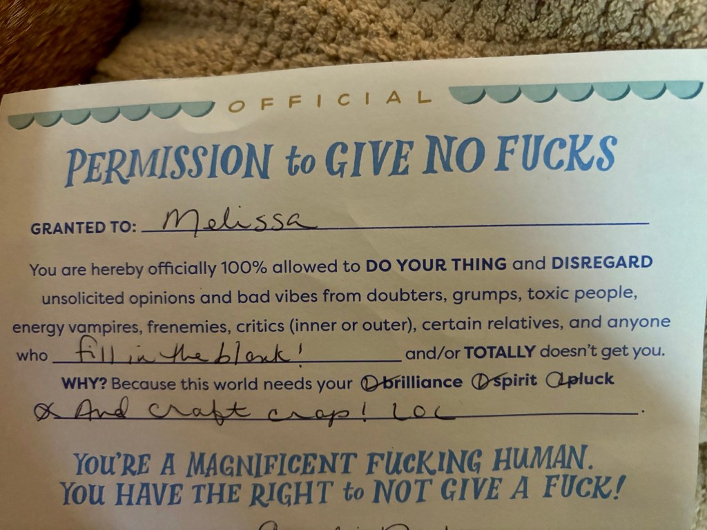 August 20, 2024 Posted on August 20, 2024 by mclements43 under Uncategorized I was given this today, which made me laugh. I’m thankful for a little bit of fun during the day. Share this: Click to share on X (Opens in new window) X Click to share on Facebook (Opens in new window) Facebook Like Loading... Related