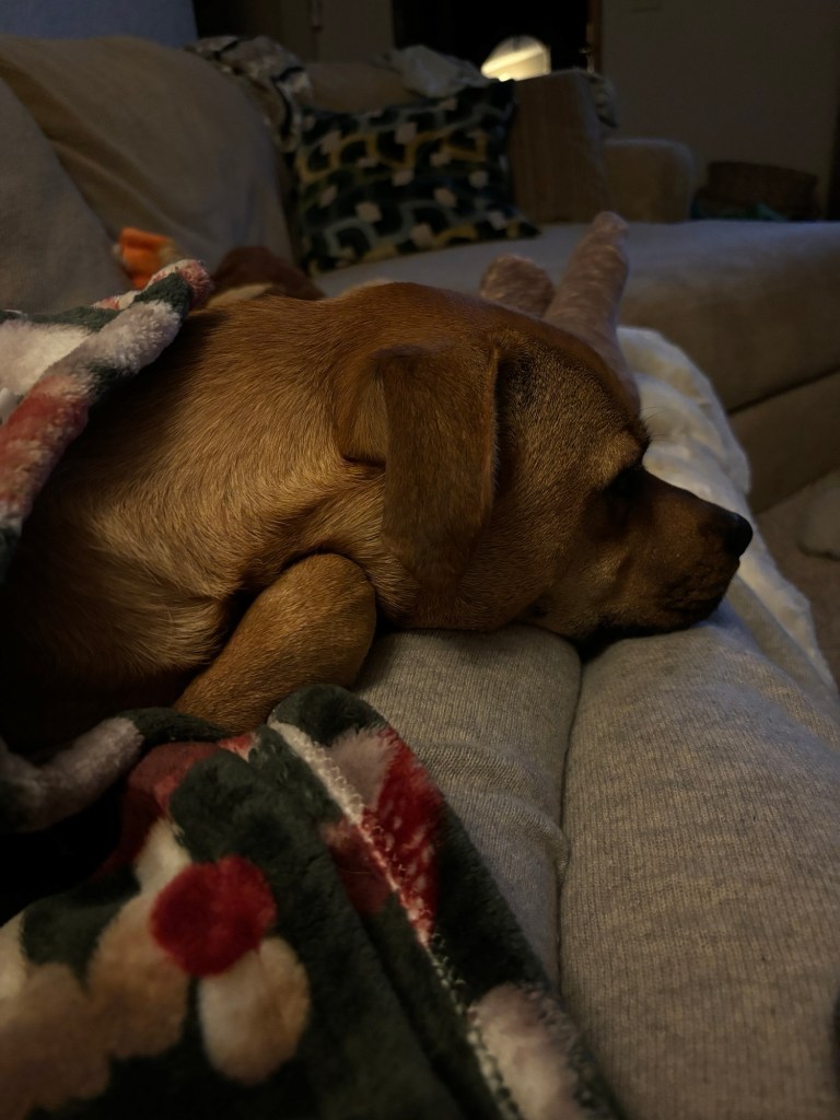 I’m thankful for Christmas present planning, chats with family, dinner out with Patrick and a warm puppy blanket.