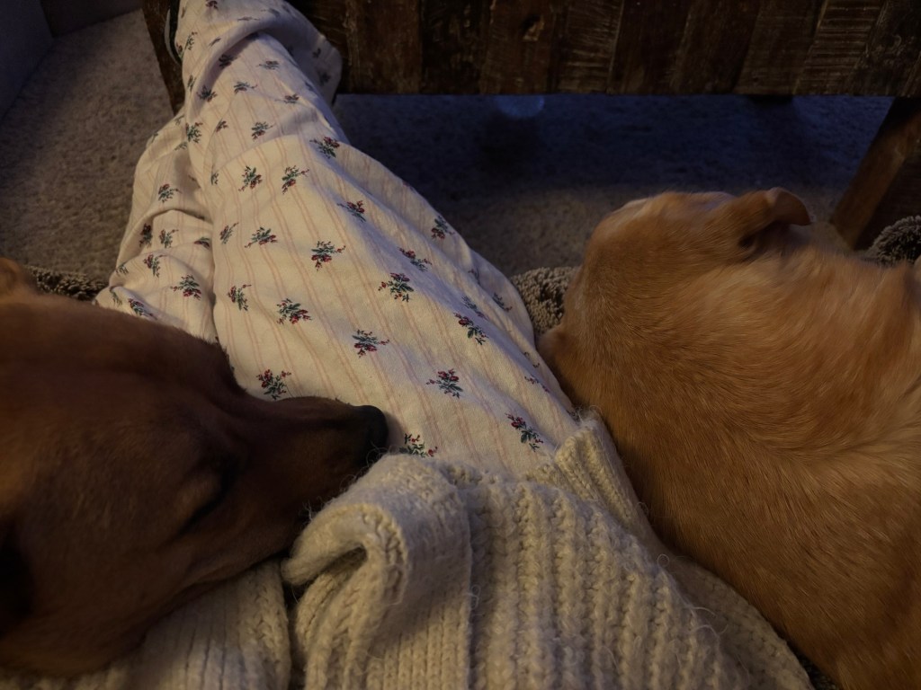 Patrick left for Texas this morning. He’s taking a couple of days to drive there, and I’m thankful he made the day’s drive safely. I’m also thankful my work day wasn’t too crazy because I made it home in time to feed the pups. Then we had a dance party in the living room and watched nothing but holiday movies until they fell asleep.