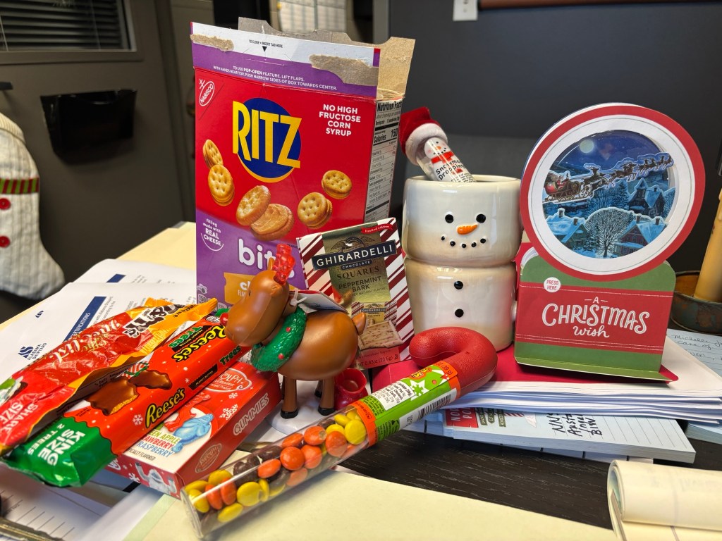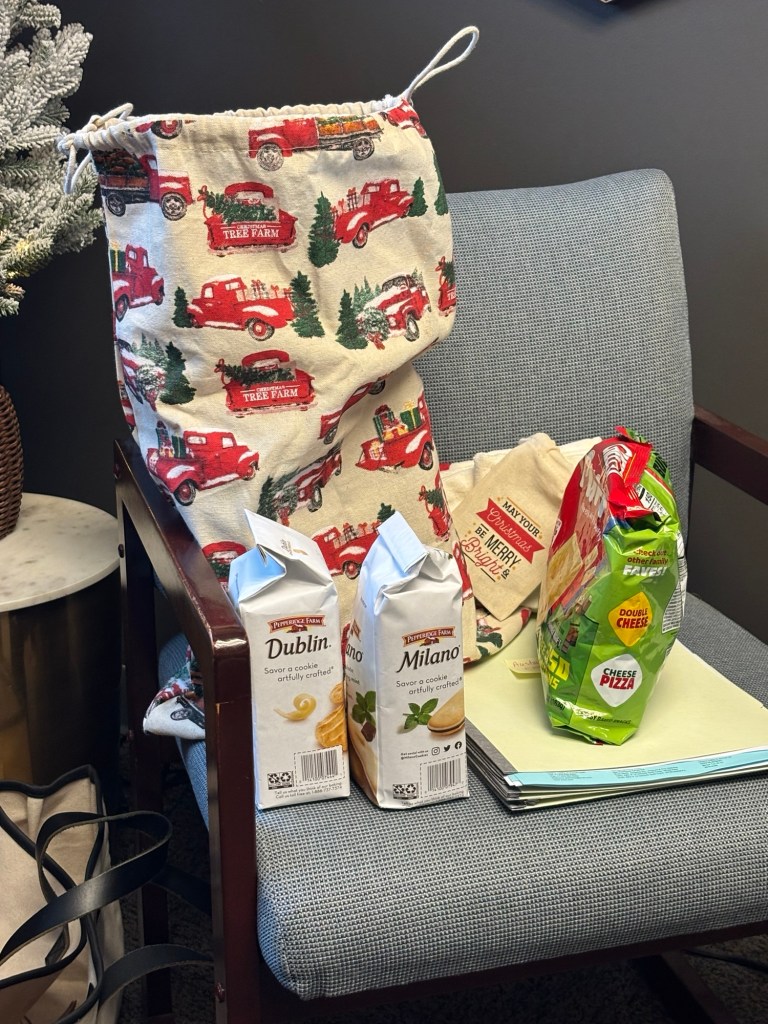 I’m thankful today for a decent nights sleep, for Patrick making it safely to Texas, FaceTime with Emma, ugly Christmas sweaters, and a surprise present at work. My team knows me well—it was mostly snacks for my “food box” in my office. How great is that?!