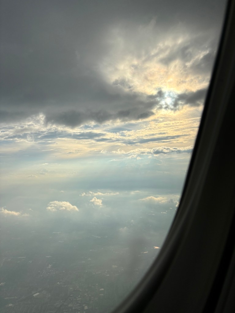 Unfortunately, due to weather back home, my flight was delayed. They said 2 hours, so I sat down at a nearby eatery and ordered a sandwich and beer. Then before my food was done, they changed plans again and announced we would be boarding soon. Luckily, my sandwich got done just in time to take with me, and the flight home was pretty uneventful. I got home later than I wanted, but I’m grateful Patrick was waiting to drive me home from the airport and I had some pretty great sky views again.