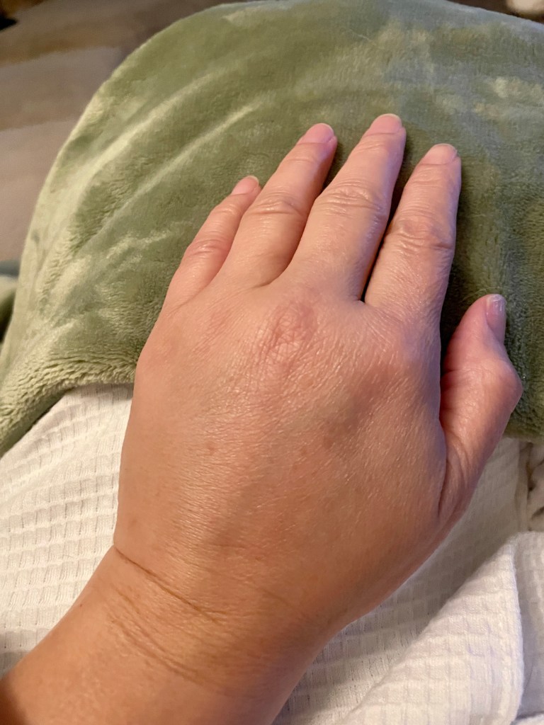 My stomach still feels tight, but I can stand mostly straight now. There is still swelling which means my stomach has no “give,” and I can’t wear anything that’s too tight. No squeezing myself into jeans. Also, the longer the day goes on, the more swelling seems to happen. Swelly belly is what a lot of women who have gone through this surgery call it. In addition to that, my stomach skin is SUPER sensitive to the texture of fabric. I’m trying to wear normal clothes again but it’s hard. I ordered belly bands and hope they are thin enough that I can wear them under my clothes without adding a lot of bulk or warmth. They have to be better than the abdominal binder I no longer need to wear.