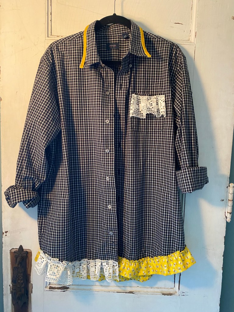 Even so, I did it. I spent most of my day in my craft room and got 2 new up-cycled shirts…almost done. I ended up having to tear one apart and resew it because I didn’t realize I had folded it on itself. Grrr. Next I’ll add some paint. Even though I didn’t finish, it felt good to get them going since I’ve had them planned for a while now.