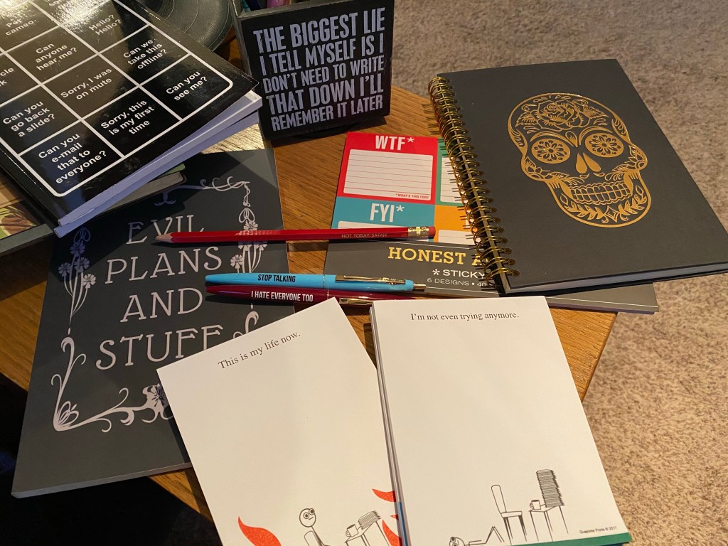 Yesterday a friend dropped off a surprise for me. It contained a bunch of work-related items to jazz up my desk, including a desk punching bag which I know will get a lot of use! I love every single thing, especially the snarky items that made me laugh.