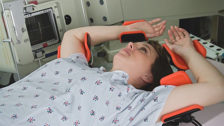 I lay on the table with my left arm up and my head tilted right and the techs line my tattoos up to red and green light markers that shine down from the ceiling. The table I lay on moves up and down and front to back. If I’m off from side to side, then they slowly pull the sheet under me while reminding me not to help. Everything is adjusted in millimeters. Once I’m lined up, I have to take a deep breath in and hold it so they can take a computer snapshot for reference. Then they leave the room. The machine arm above me moves slightly to the right and I can hear and see the screen adjusting for the beam. Soon I can hear the nurse telling me to take a deep breath and hold it, and the machine turns on. There is no light, only sound and it lasts 20-25 seconds. When the sound stops, I know I can breathe again before they tell me I can.
