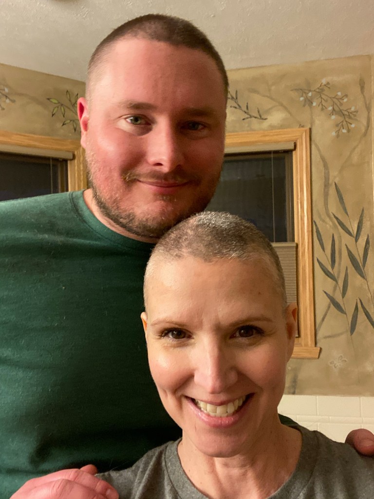 To stand in solidarity, Patrick asked me to shave his head too. It was such a sweet gesture, and I can’t even adequately express how much it means to me. I’m blessed to have him on my side. Losing my hair isn’t easy, but I’m thankful today to have this milestone over. It’s just hair and it will grow back one day. In the meantime, I get to play with wigs and hats and scarves. Fun!