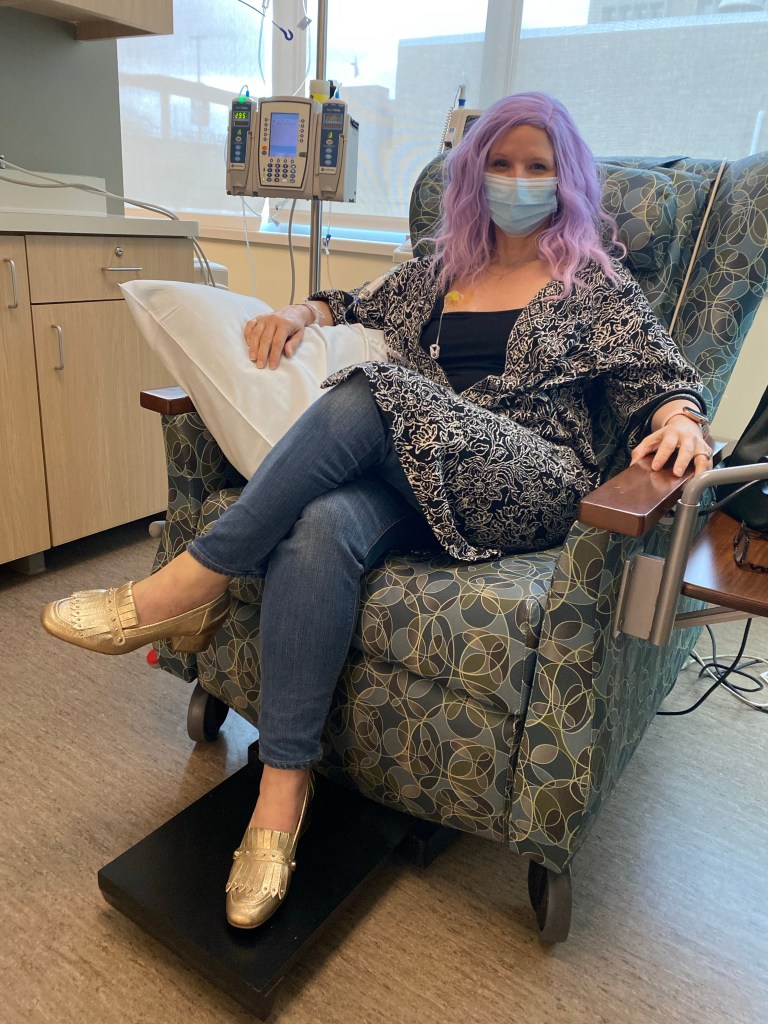 Only 4 more treatments to go! Yay! I wore my storage unit wig today and even put on fake eyelashes. It’s weird not having eyelashes and eyebrows anymore. My face feels so bare. But the fake lashes looked awkward without actual lashes too. Oh well. I’ll keep trying.